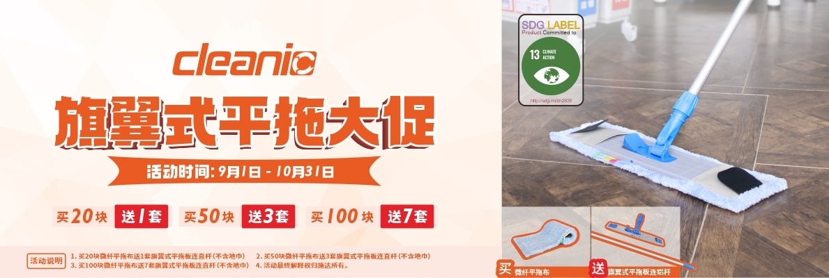 首先我们施达这款采用绿色生产技术,免漂染的环保型超细纤维平拖布已经取得SDG 13(气候行动)认证,联合国17个可持续发展目标之一。