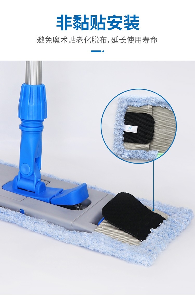 你有过这样的经验吗?使用市面上质量一般的那种粘贴式平拖,当长期使用氯及高温消毒导致魔术贴快速老化,不得不很快又要更换拖布了,其实平拖布擦地的那一面还是好好的。就因为魔术贴的失效,导致要将整块布扔了,多可惜多浪费,着实让人多心疼啊!