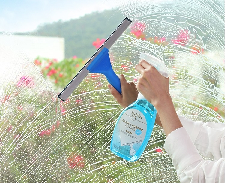 - 初清:喷洒清水冲掉玻璃上的污渍。