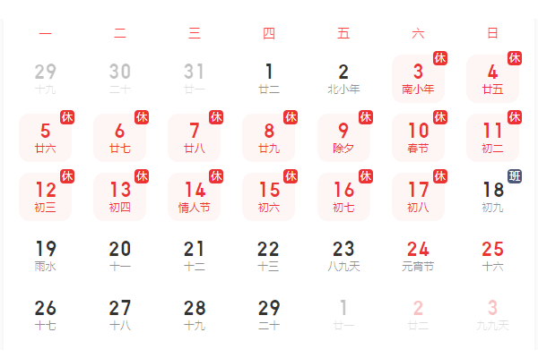 为欢度新春佳节,我司定于2024年2月3日起放假,于2024年2月18日(农历年初九)恢复上班!