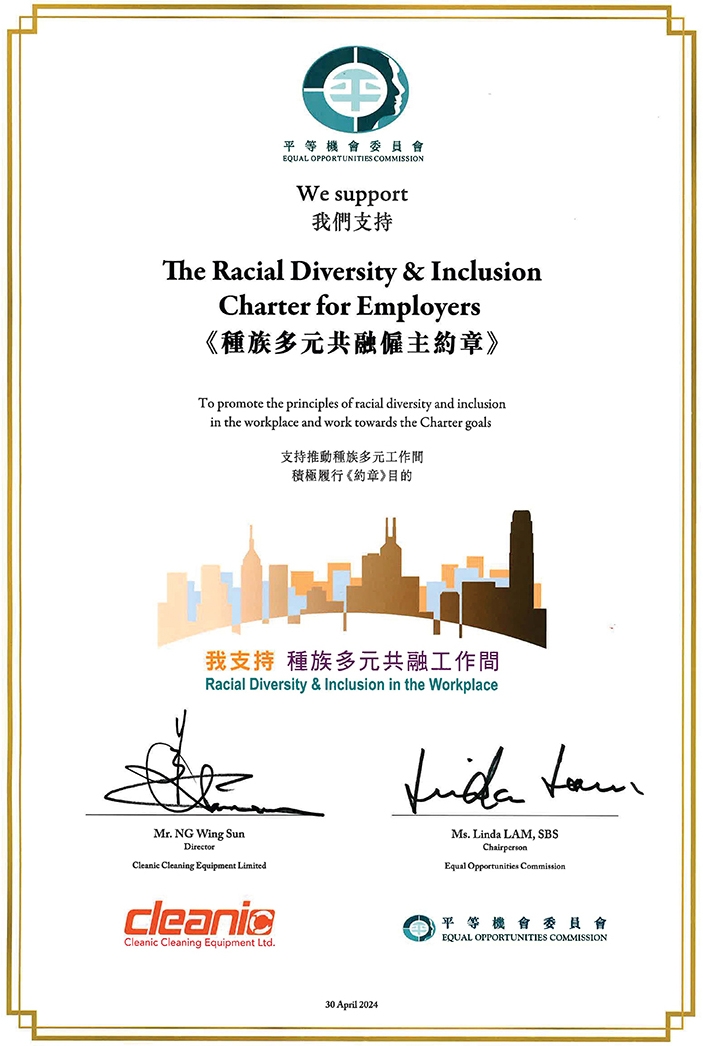 Cleanic近日正式签约《种族多元共融僱主约章》。积极推动种族共融、机会公平等政策。