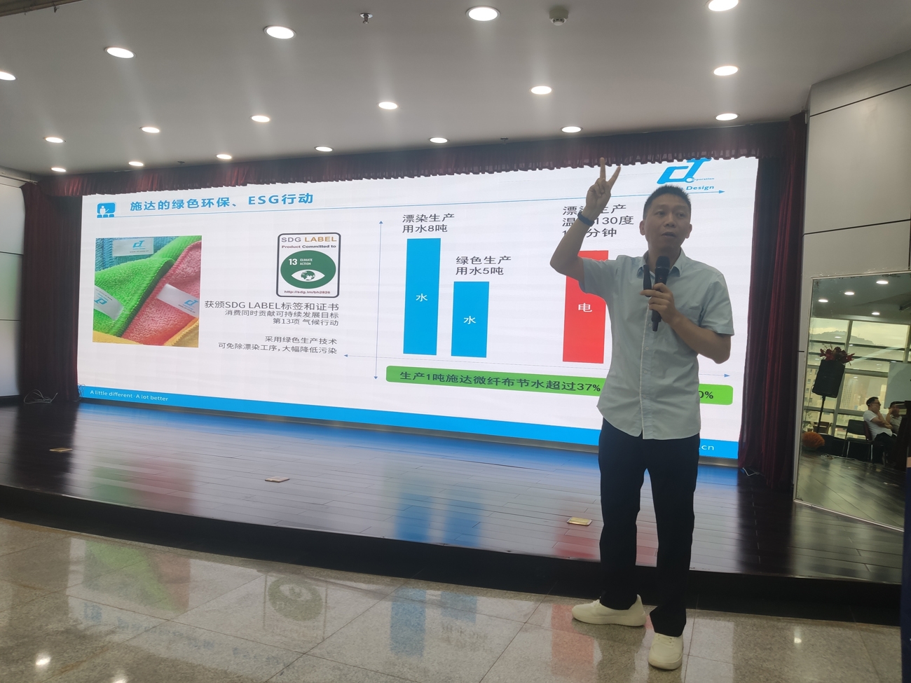 在国家碳达峰、碳中和的目标下,绿色环保、节能减排成为各行业发展的方向和标准,当然清洁行业也不例外。为此,周经理向来宾们分享施达公司以绿色环保助推更高质量清洁标准化的理念和实践。包括已取得的SDG12、SDG13认证,以及ESG在公司的推行落地。