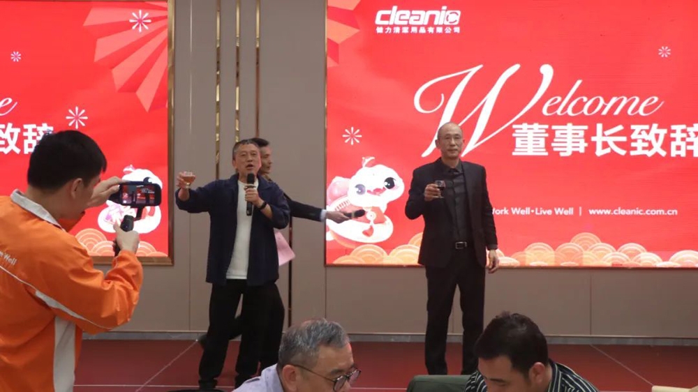 晚宴开始前,吴董向全体员工和来宾们分享了公司的使命、愿景、价值观,以及公司未来5年的发展战略。黄董则肯定了各部门及同事们在2024年所取得的进步,并向全体同事与现场嘉宾致以新年的问候。