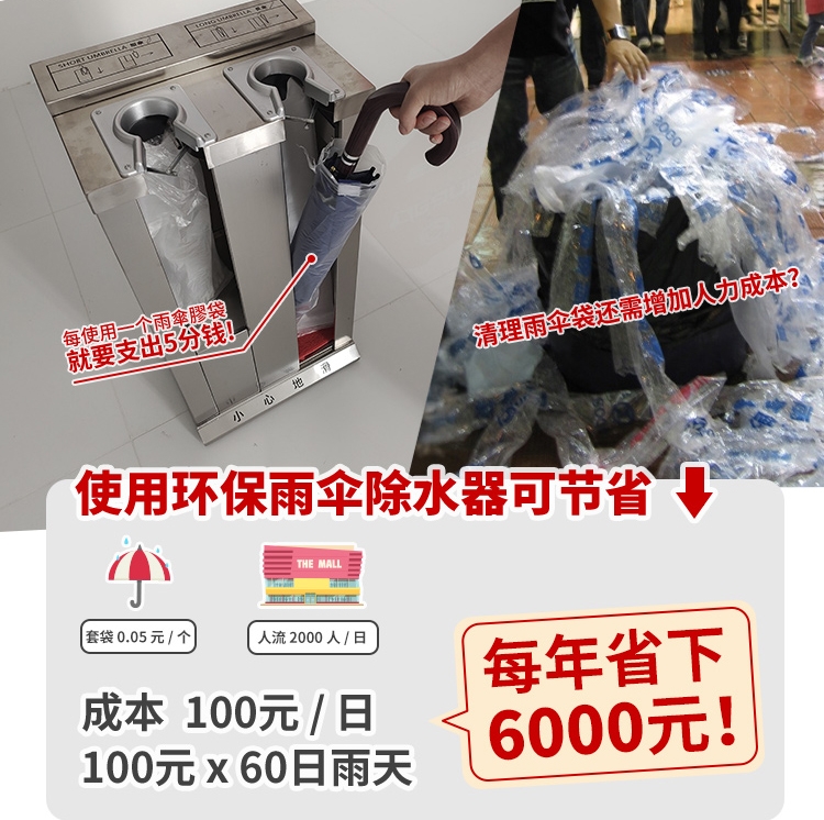 最重要的是,环保属性直接拉满,不用再消耗一次性塑胶。就雨伞袋一项,每年可以帮忙省下约6000元呢。赶紧为环保出份力,入手一台吧!