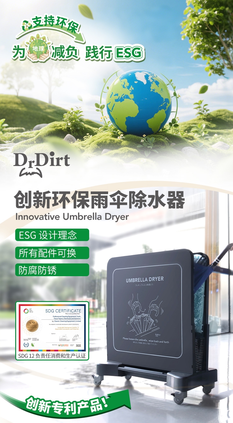 Dr.Dirt 环保雨伞除水器,就是为了让大家告别这些 “麻烦”,用简单的方式为地球减塑减负,用实际行动践行ESG理念。