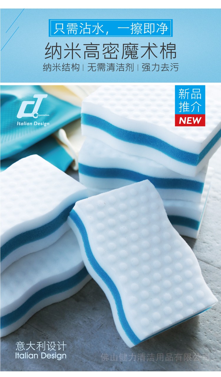 快来试试CT施达 纳米去污魔术绵吧。一款仅用清水便能作出完美清洁效果的清洁海绵!纳米级别大小的颗粒,深入物体最微小表面,轻松去除顽固污渍。针对茶渍,餐具上的污渍,只要加水,不需加任何清洁剂就能轻松去除任何茶渍污渍,连清洁玻璃、镜子、不锈钢、陶瓷、皮革、塑料制品等陈年顽固污垢都解决到。