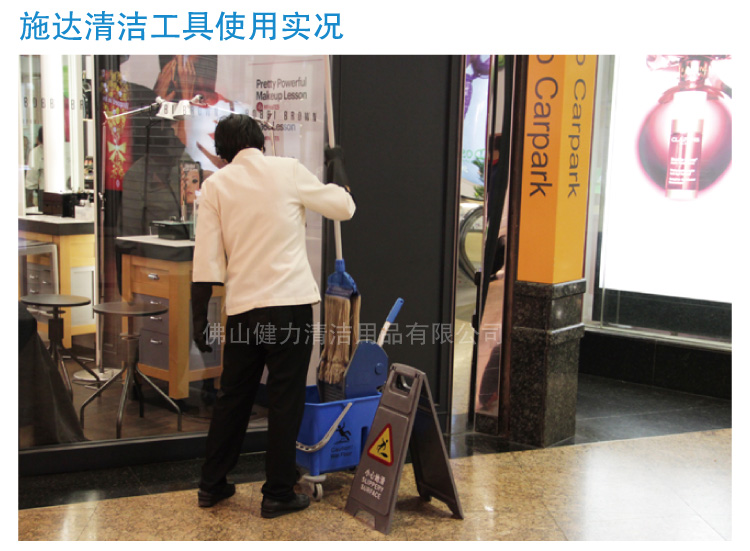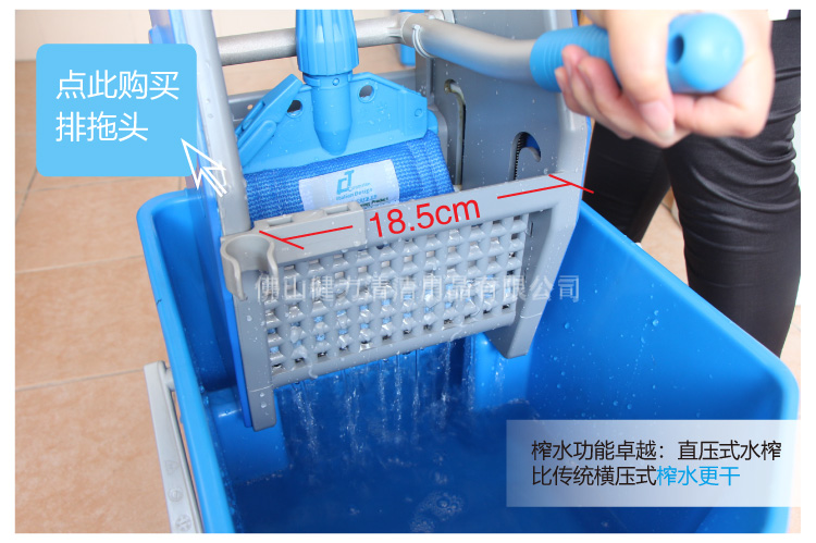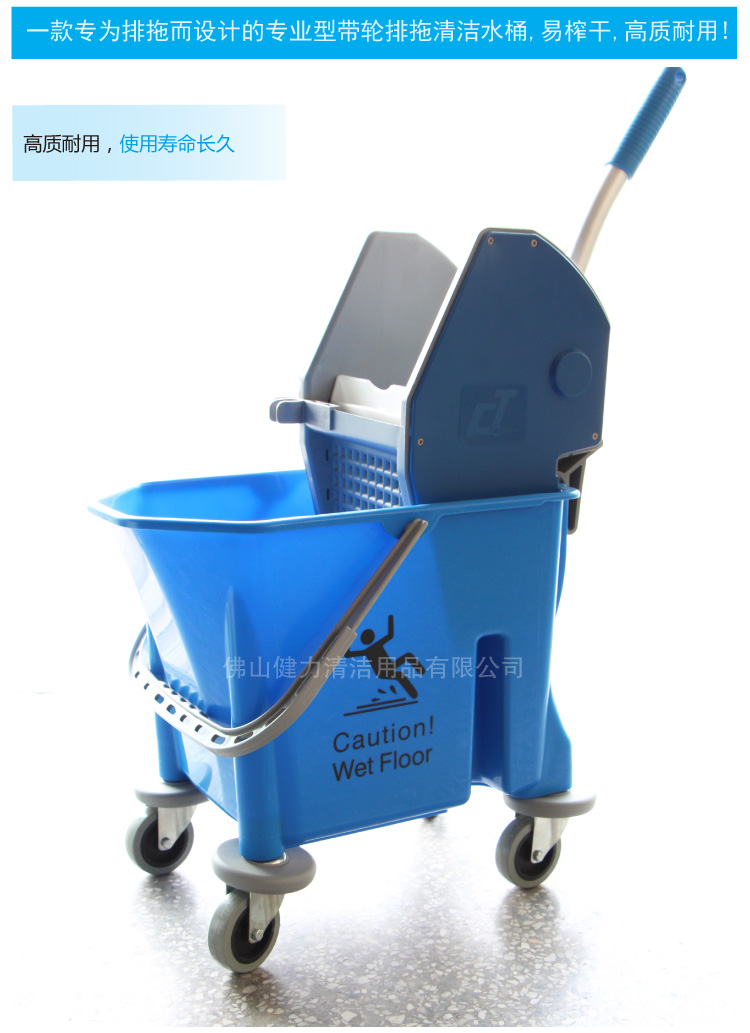 疫情之后,餐饮业、商场都出现一家大小出外吃饭会面,好不热闹。商场、店铺为了加强防疫,都会将卫生清洁工作放在第一位。但看到工作人员拖地时用手拧干拖把,手提水桶也费力,何不为他们准备这单桶榨水车,那就可轻松清洁地板。