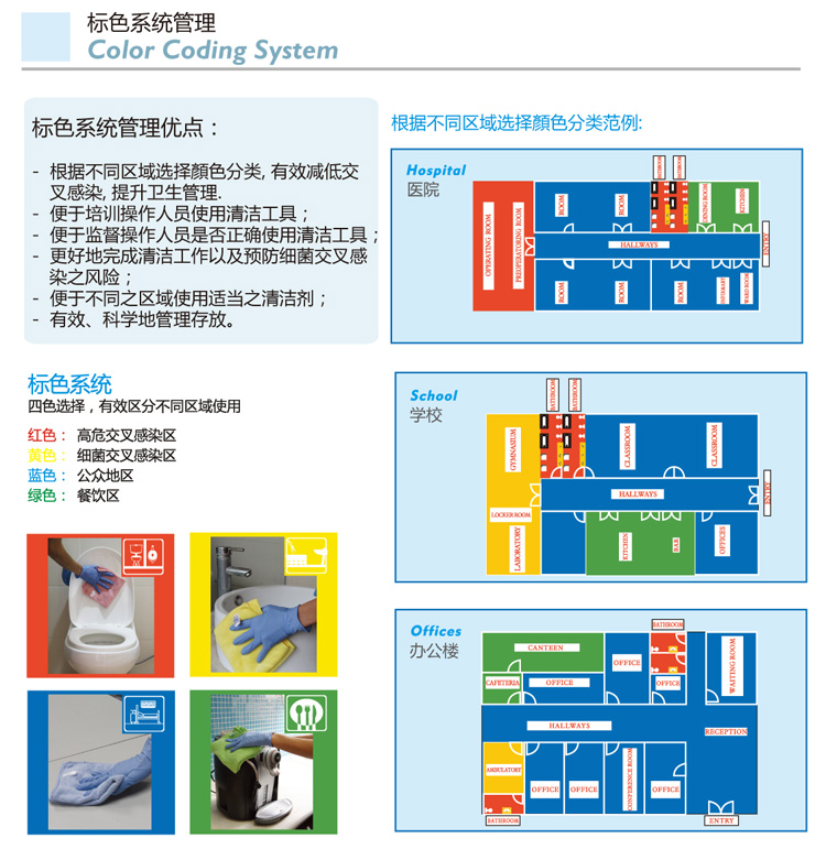 - 四色选择,有效区分不同区域使用,减低交叉感染机会