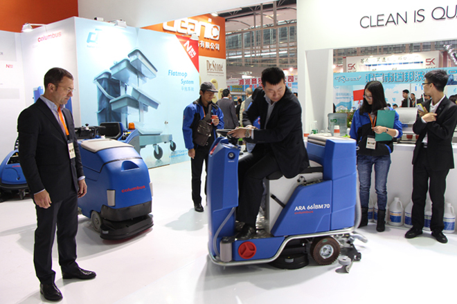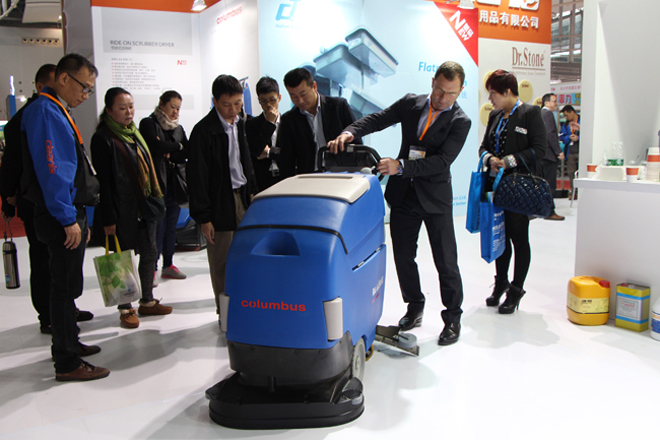 德国合作方 - 德国奥林匹斯总裁 Mr. Joerg Peter Staehle 亲身在展场解说洗地机的使用功能