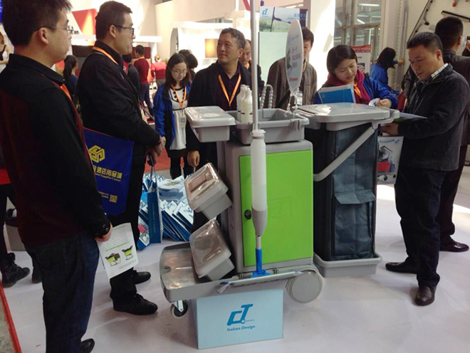 健力集团执行董事吴永新在现场展示新一代施达储物箱服务车