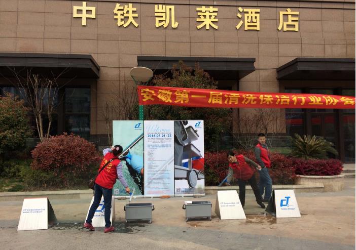 由安徽省总工会、安徽省人力资源和社会保障厅主办,佛山市施达清洁设备有限公司倾情赞助的安徽省第一届清洗保洁行业农民工职业技能竞赛于2016年3月在安徽合肥中铁凯莱酒店开幕。期间举行的玻璃清洁大赛所用工具CT施达二合一玻璃刮,因其操作快捷简便,大幅提升清洁效率而得到广大参赛者的肯定和赞赏,被誉为新一代玻璃清洁神器。作为协助本次玻璃清洁大赛的主考单位,佛山市施达清洁设备有限公司被大会颁发“贡献奖”。