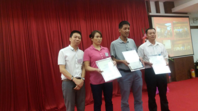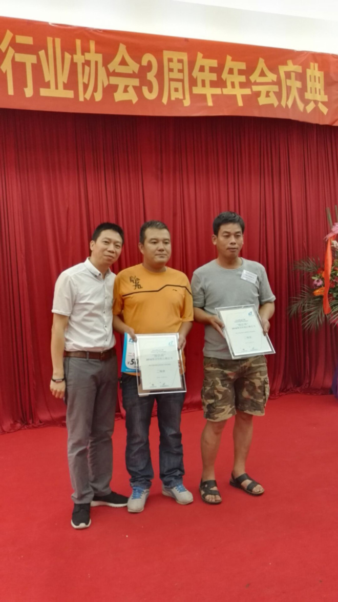 获得第3名的企业及个人奖项领奖现场:(佛山市环美装饰清洁工程服务有限公司) (广东明龙环境工程有限公司) (佛山市坤龙环保工程有限公司)