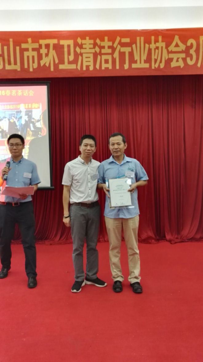 获得第2名的企业及个人奖项领奖现场:(佛山市振辉清洁服务有限公司)(佛山市三水晶雅清洁服务有限公司)