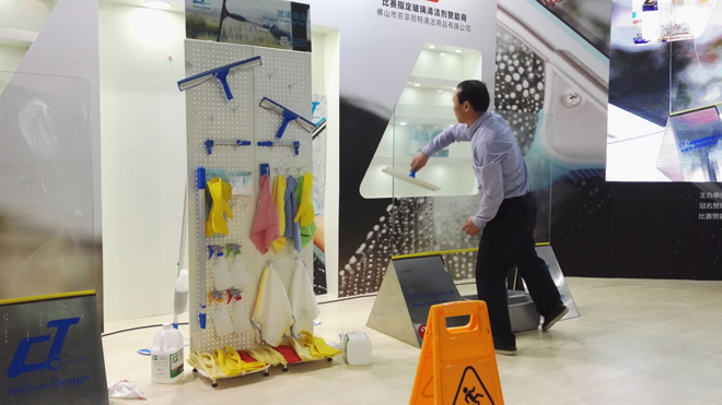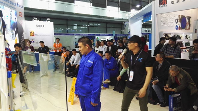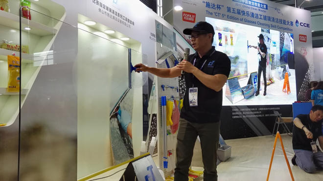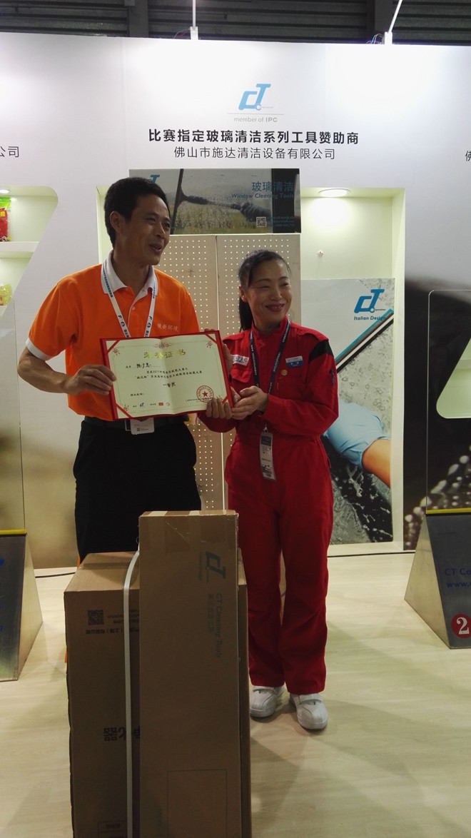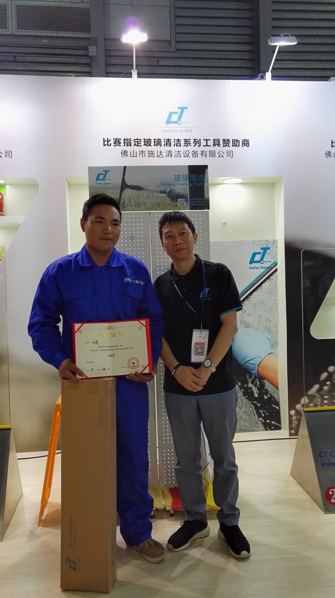 由佛山市施达清洁设备有限公司冠名赞助之2017年“施达杯” 第五届快乐清洁工玻璃清洁技能大赛 (上海站)于今年4月27号在第十八届中国清洁博览会中圆满结束。比赛现场更是几度沸腾、精彩连连。参赛选手使用由施达公司提供的施达2合1玻璃刮、高密纳米魔术棉、玻璃布进行比赛,经过激 烈的角逐,最终产生二强得主。