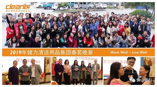 时光荏苒,岁月更迭.不知不觉,历史的时钟已经指向2019年,佛山健力清洁用品有限公司一年一度春茗活动于2019年2月15日 (星期五)举行。当天公司的全体同仁欢聚一堂, 现场热闹非凡. 晚会中有奖项颁发、游戏节目、丰富抽奖等精彩环节。我们在这欢声笑语中,迎接新的一年。