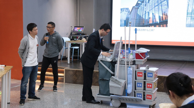 2019年3月7日,在健力加油站,与广州江迅清洁服务有限公司各所属项目的经理人,展开了物业保洁标准化交流会。各项目经理齐聚一堂,围绕项目考察——区域划分——产品选择——岗位配置——工作计划——工作流程——管理模化,共同探讨物业保洁行业的现状及未来发展方向。