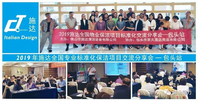 2019年8月4日,本次交流会来到了包头。在施达包头地区经销商:包头市经久酒店用品有限公司的协助下,诚邀各物业管理人员齐聚一堂,围绕预防管理——感控管理——模块化管理——营运体系(培训、考核体系),共同探讨保洁行业的现状及未来发展方向。