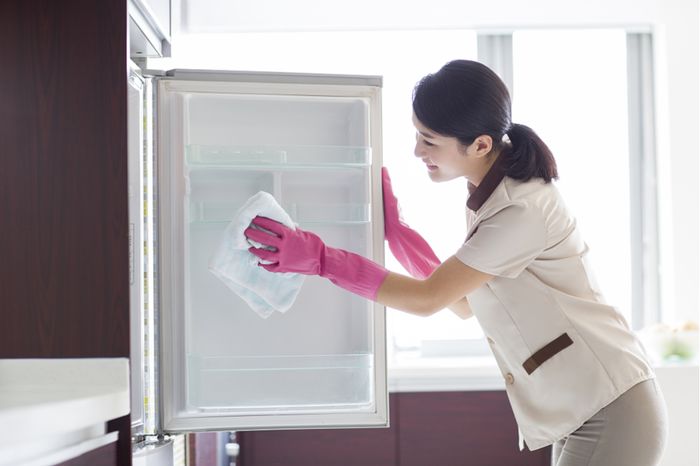 入门版方法:由于目前家用冰箱使用频率过高,一周至少要擦拭一遍冰箱的表面和清洁内部。清洁前一定要拔掉冰箱电源插头或关掉断路器开关,把过期的食品、变质的剩菜、不再新鲜的食物全部扔掉。然后再用专门的抹布擦干净内部的污迹。