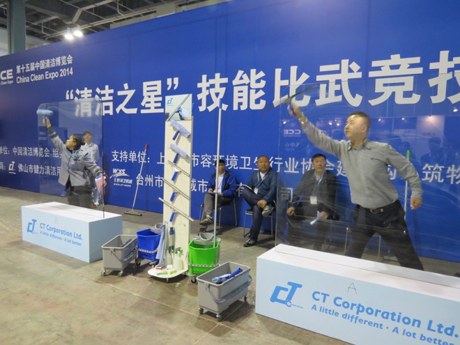 在第十五届中国清洁博览会期间, 我司于展览馆内举行施达玻璃刮 - 玻璃清洁大赛, 共有20多间公司单位参与,以下与您分享比赛的精彩花絮: