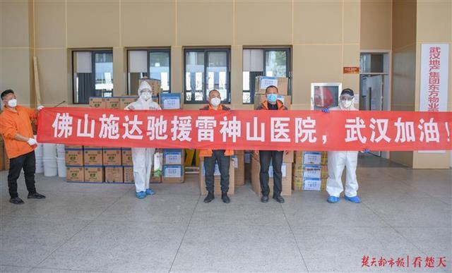 这批物资由广东佛山施达清洁设备有限公司捐赠,昨日下午5时左右在佛山装车出发,行驶1000多公里运抵雷神山医院。