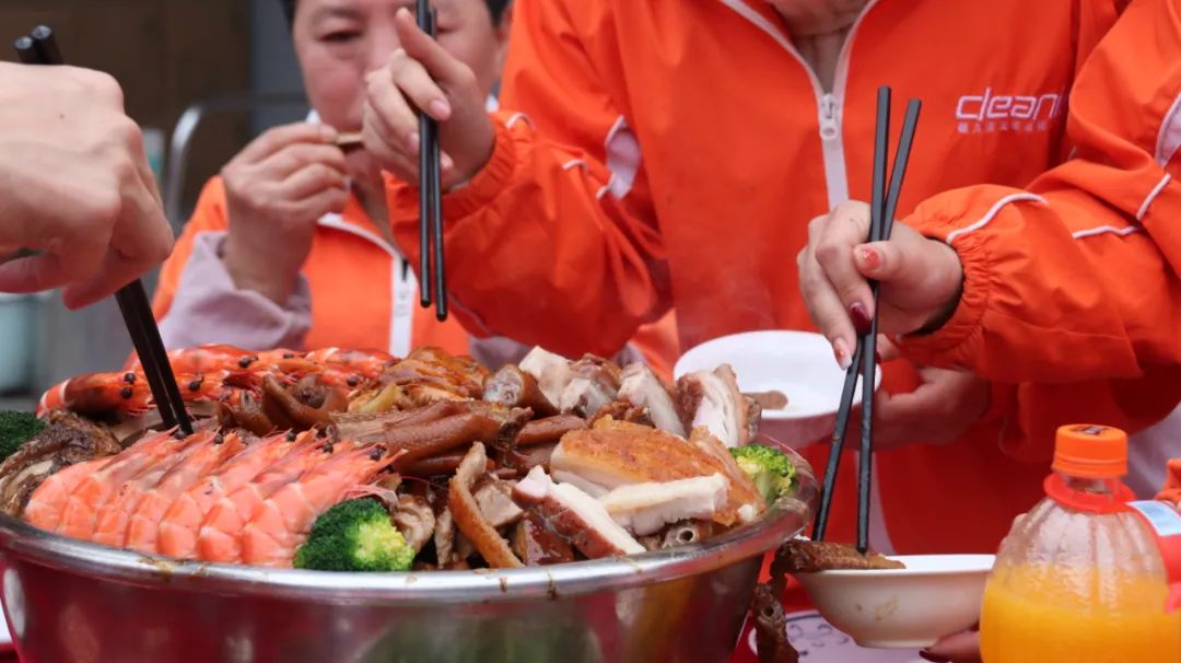 盆菜宴之后即是温馨又刺激的晚会,煽情的十年服务深情告白、激人奋进的年度最佳客服颁奖、勤奋坚守的年度全勤故事以及激动人心的抽奖环节。