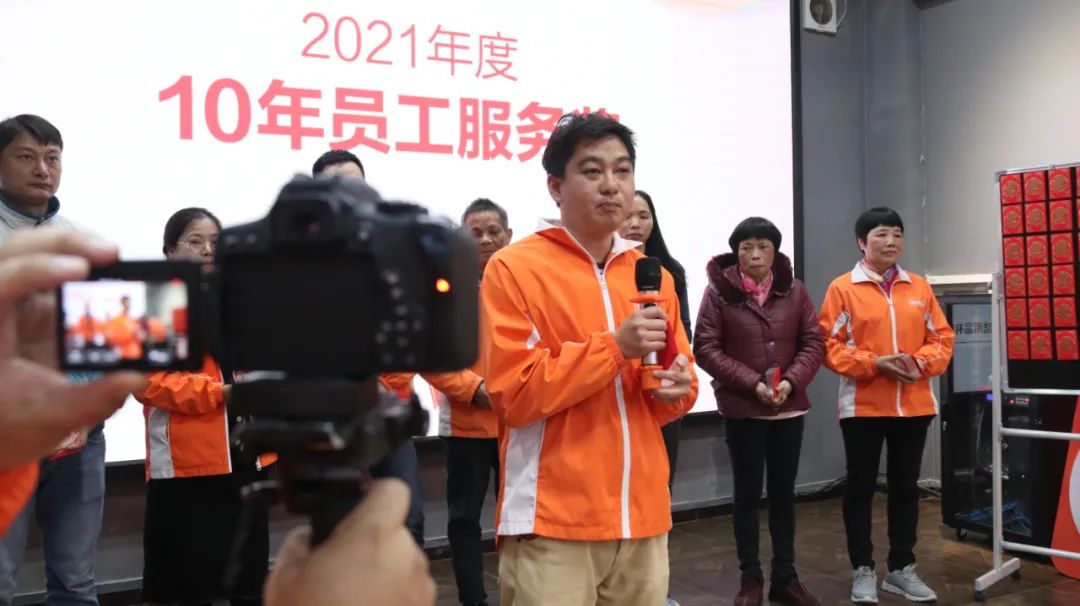 10年员工服务奖,是颁给为公司服务10年的老员工。员工代表的发言充满了温馨、欢乐与感动。