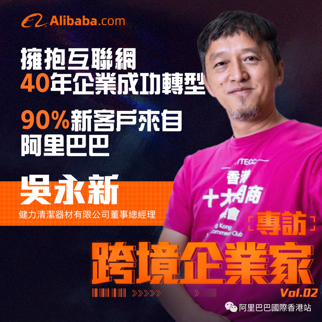 创建近40年的传统企业——健力清洁器材有限公司谋求转型,2017年在内地运营天猫平台的同事的鼓励下,公司董事总经理吴永新亲自参加了「橙功营」的培训,迅速组建运营团队,对阿里巴巴国际站平台进行优化,两个月后询盘量猛增四倍。 企业成功转型,现时80-90%的新客户都来自阿里巴巴国际站,健力在阿里巴巴的第二个平台亦于日前启用。
