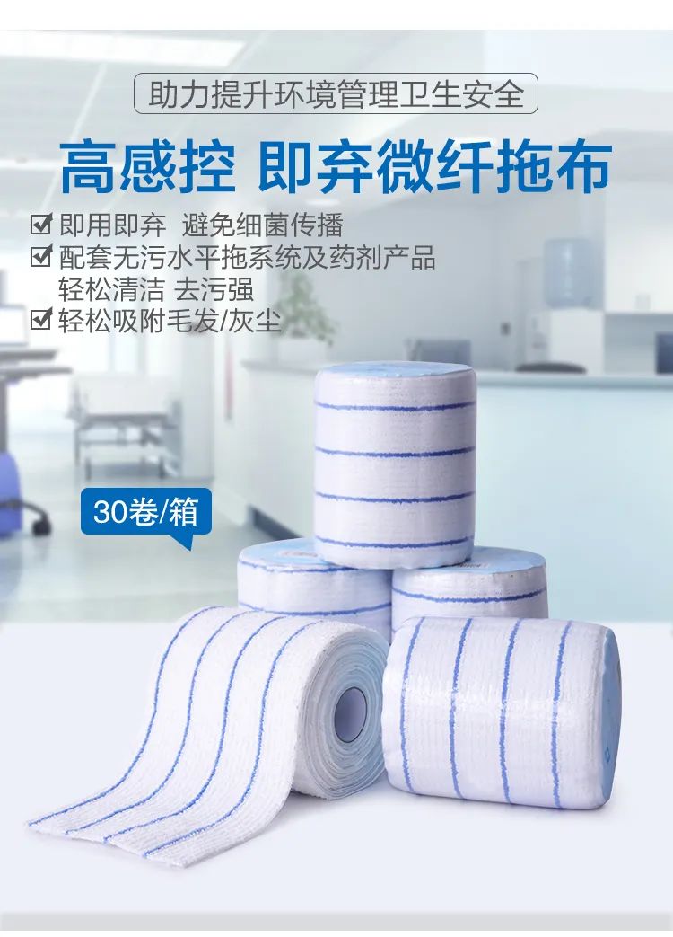 而公共卫生间、幼儿园、餐厅等人员密集的场所,也建议使用高感控即弃微纤拖布。