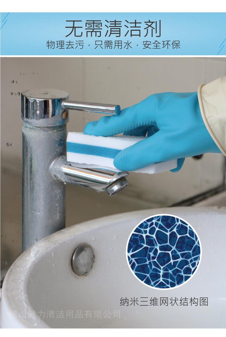 块状的清洁工具,适合用在塑料制品、树脂加工品、玻璃制品、陶瓷制品、木制品、铁器上,不能用在厨房漆器上(如上漆的碗筷、橱柜推车等)。