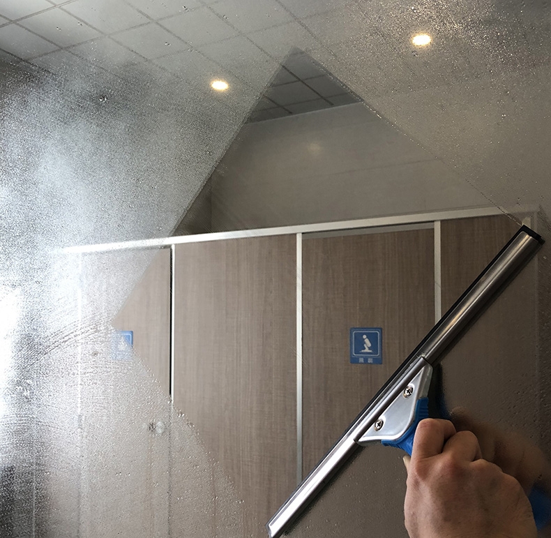 这时候可以使用玻璃刮直接一刮,将水雾挂掉就行,无需在用抹布去擦了,既节省时间,也不用弄湿抹布。