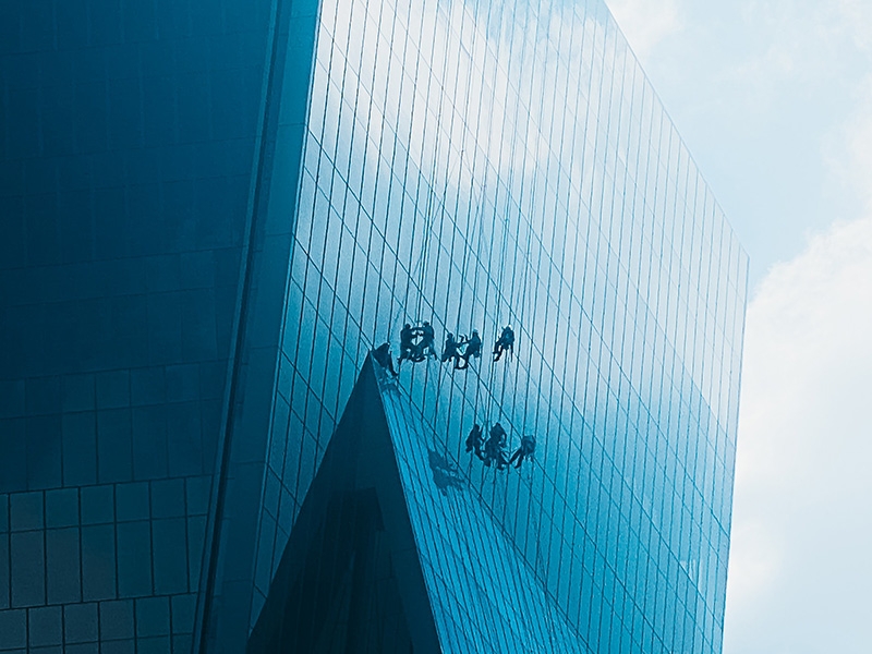 一、高楼户外玻璃清洁的过程