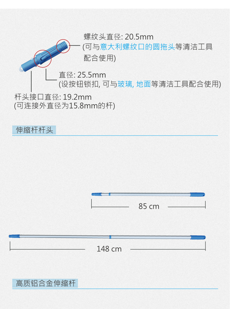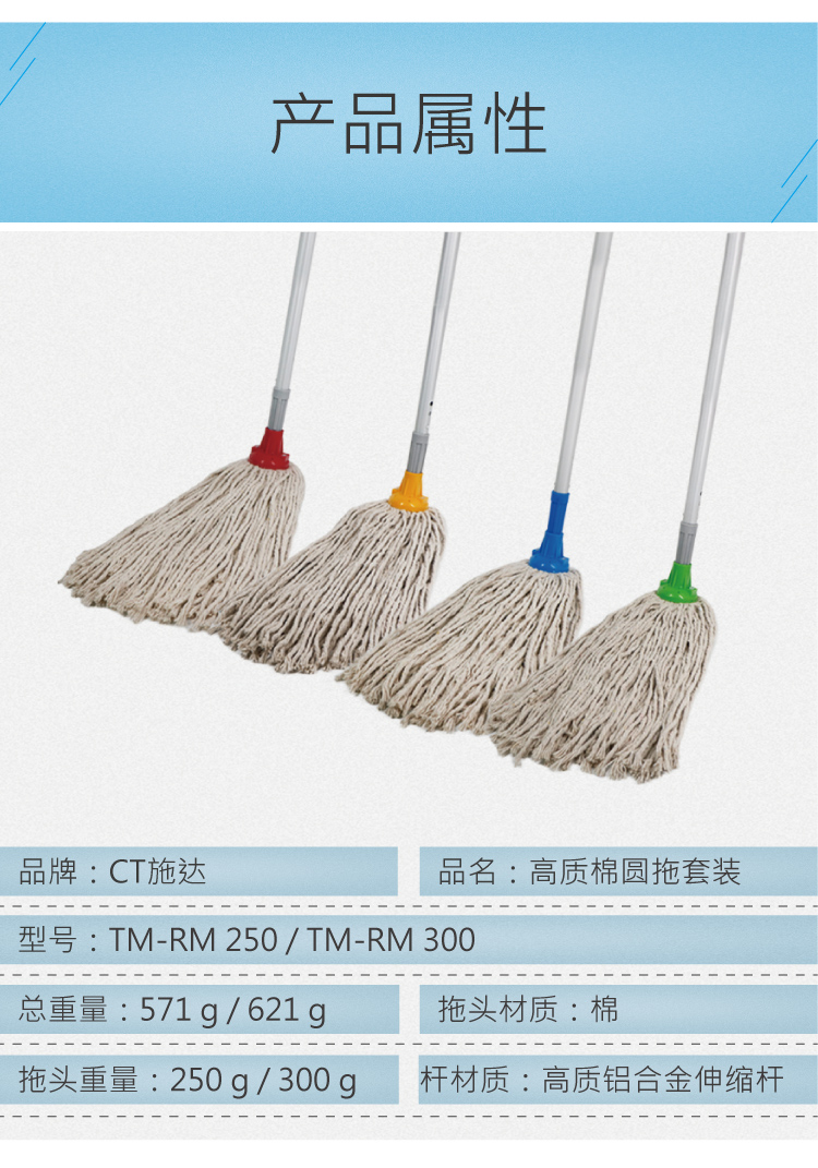 CT施达 圆棉拖头连铝杆全套 配250克棉圆拖头