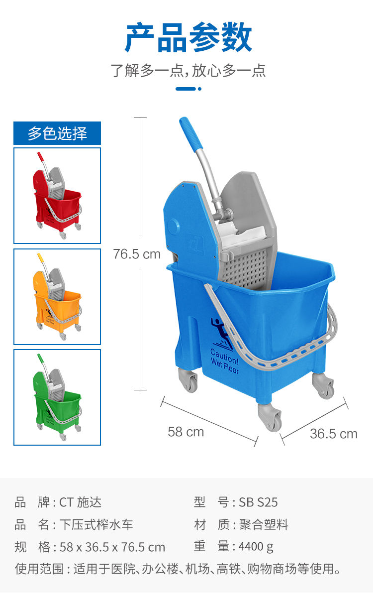 CT施达 单桶榨水车配2寸静音轮 红黄蓝绿四色可选