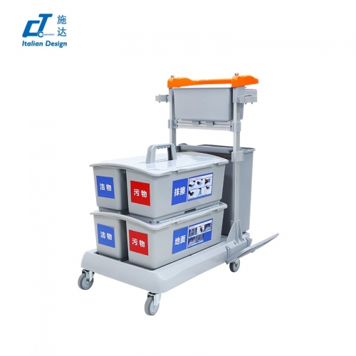 CT施达 灵动型平推系统清洁车 配垃圾桶、2个含标贴双格桶