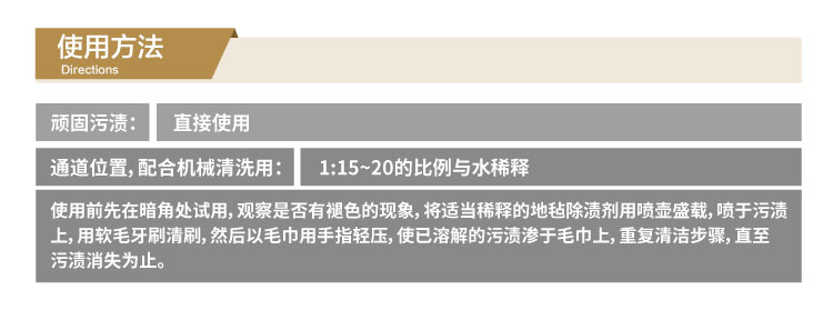 具有强效去除油性,水溶性污渍能力,针对地毯上的茶渍,咖啡渍等顽固污渍有优秀的清洁能力