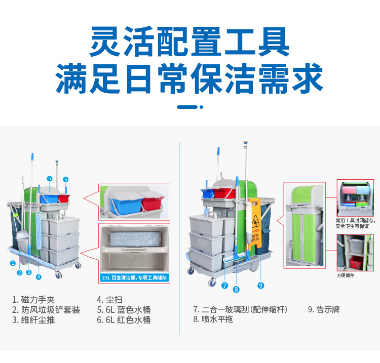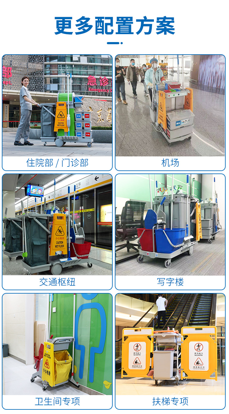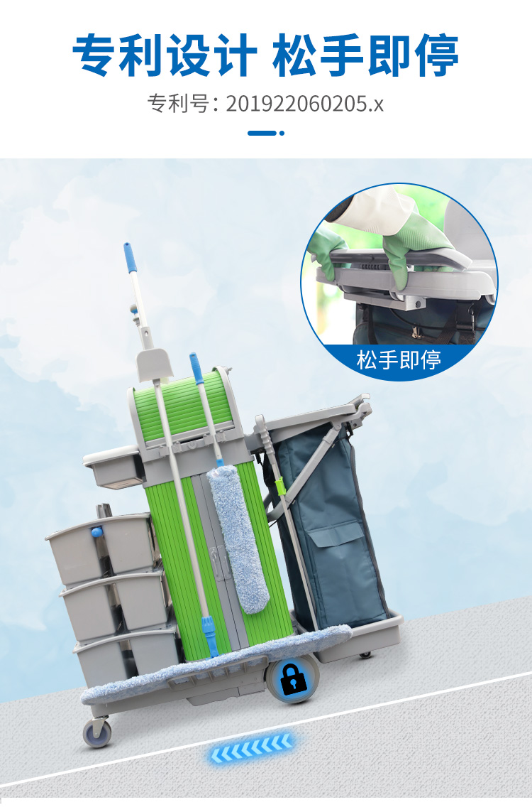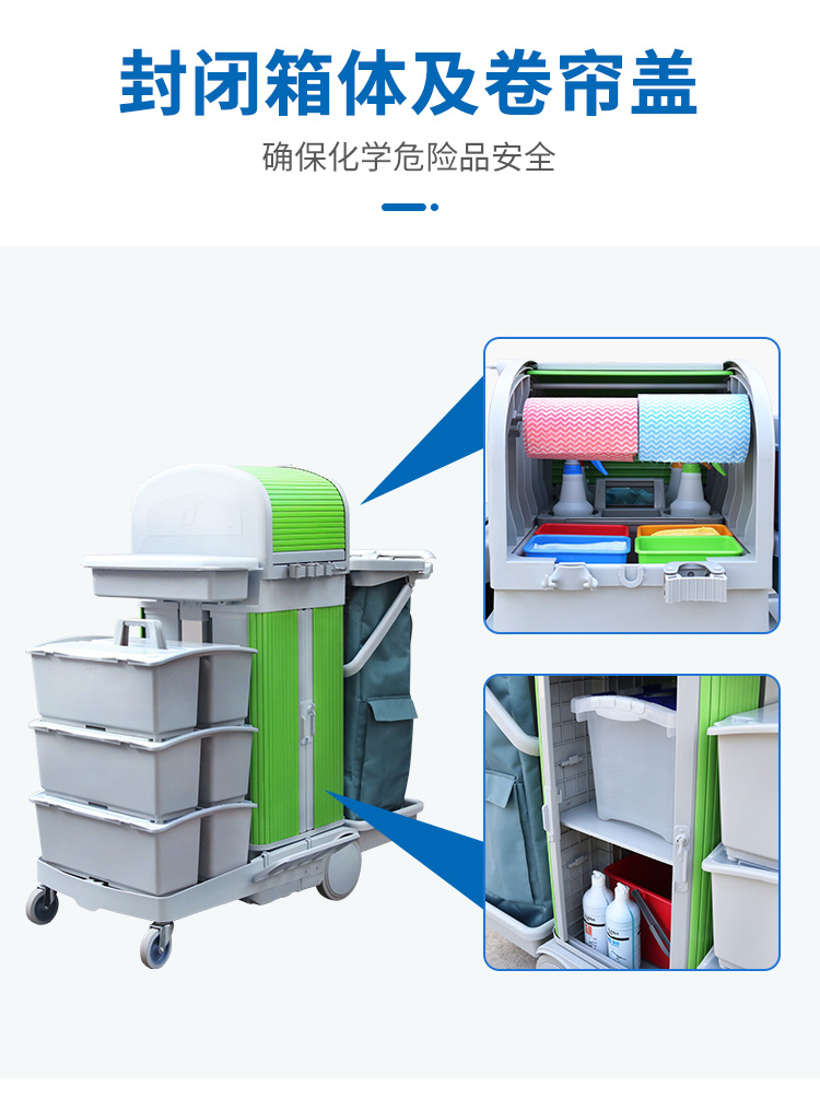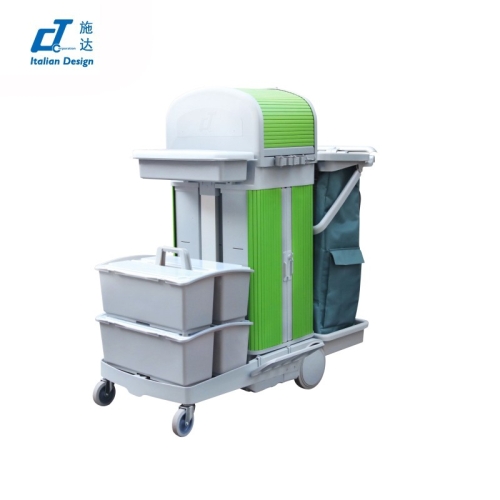 CT施达 趟门储物箱+卷帘顶盖平拖清洁服务手推车带刹车系统