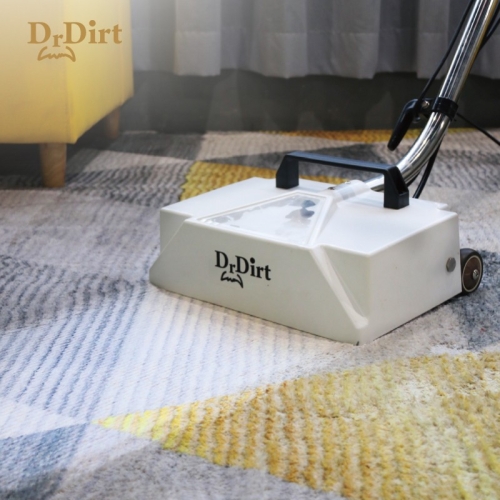 1.用打气喷壶将稀释好的清洁剂喷洒到地毯上,等2~3分钟软化污渍,再用抽洗机配清水进行抽洗及过水一步到位