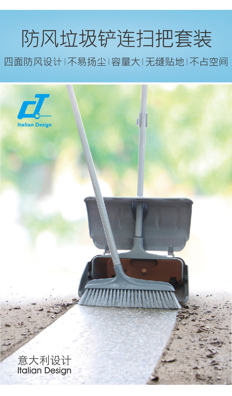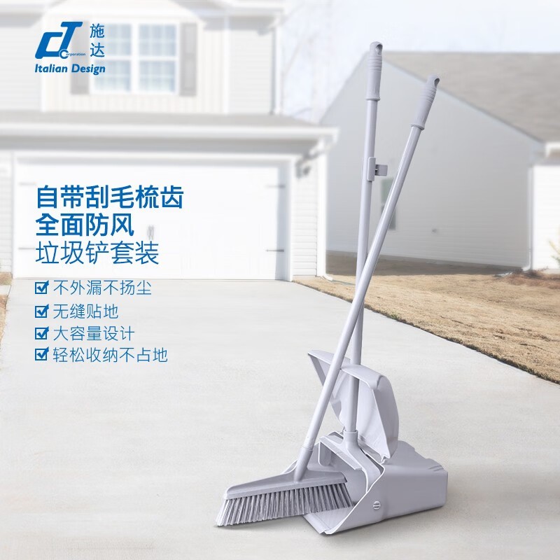 CT施达 铝合金手柄防风垃圾铲连扫把 灰色