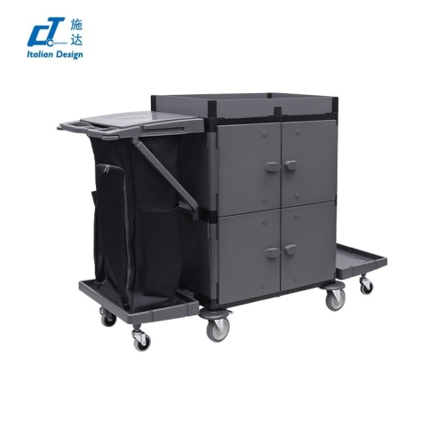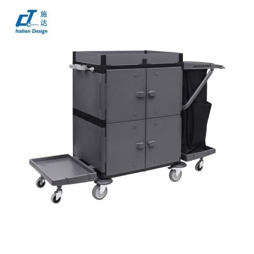 CT施达“形变”系列酒店客房服务车-前后8门,单边推手,双托盘