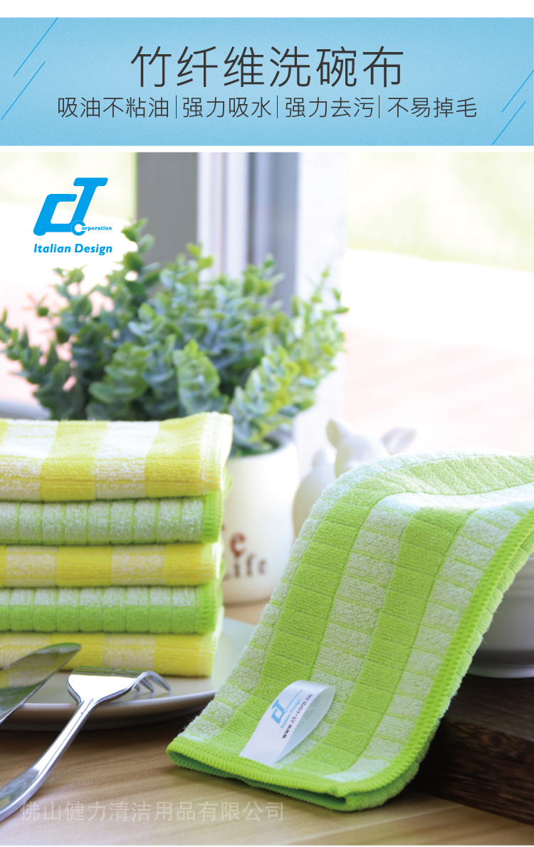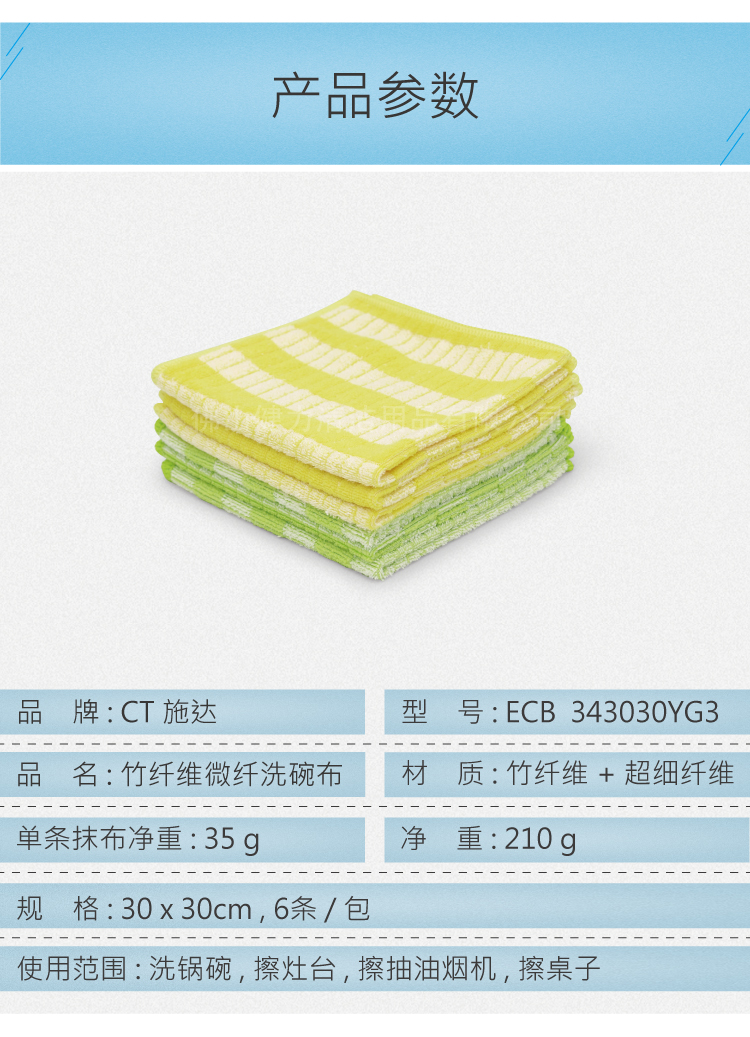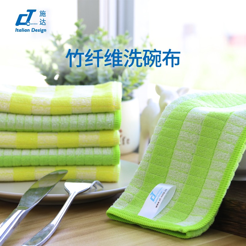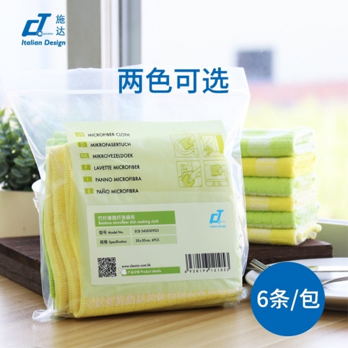 CT施达 竹纤维洗碗布 (6条/包,黄色3条+绿色3条)