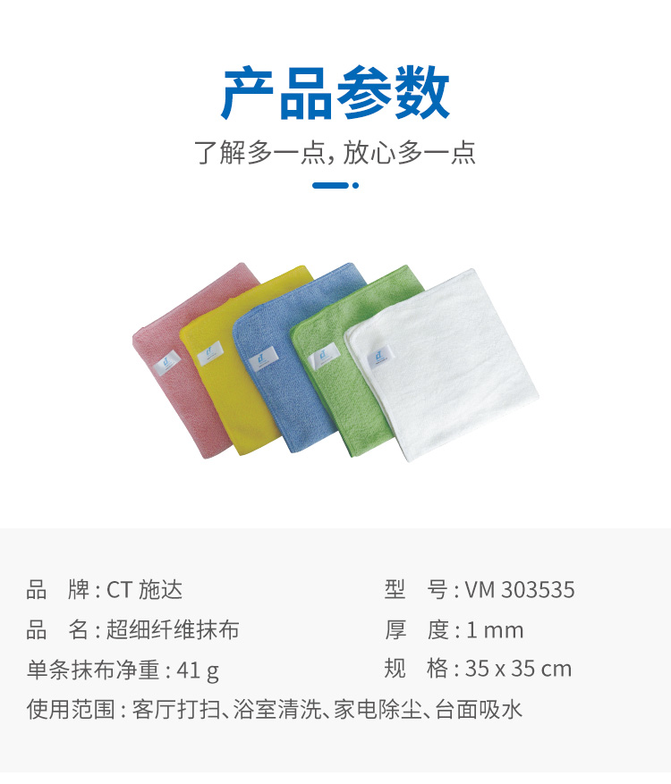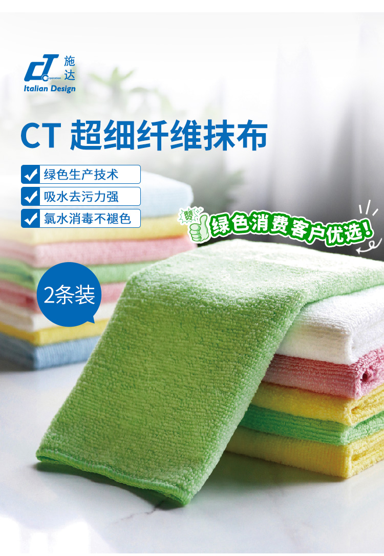CT施达 超细纤维抹布绒面方巾 红/黄/蓝/绿/白五色可选