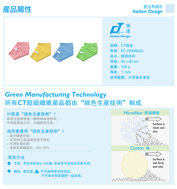 CT施达 微纤抹布 30*60cm 红黄蓝绿白五色可选